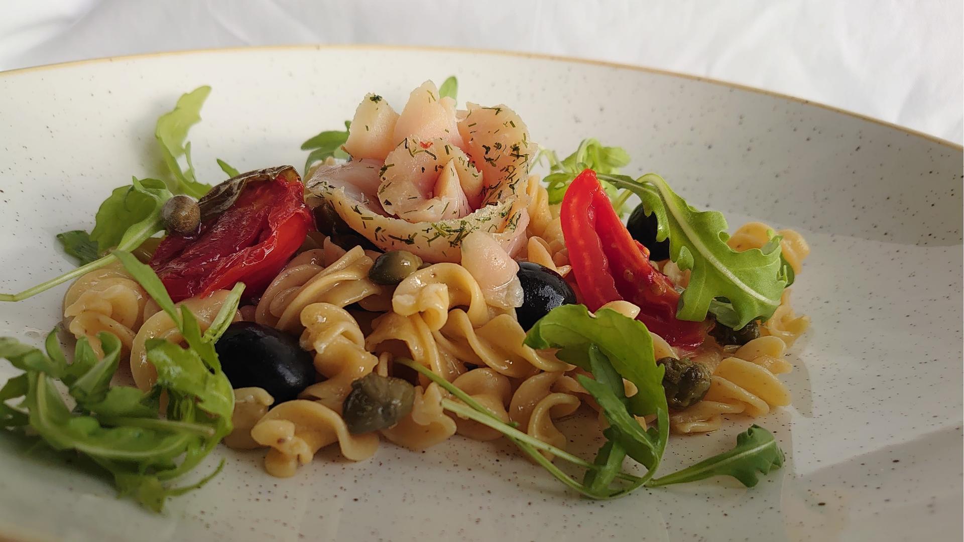 Ricette Fusilli Di Pan Di Segale Con Salmerino Affumicato Rucola Olive Pomodori Secchi E Capperi